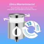 Para ambos productos el único mantenimiento es el recambio de su único Núcleo Purificador interno reemplazable cada 12 meses.